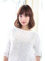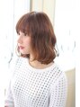 ベースは重めのボブスタイル。前髪はラウンドにカットします。中間、毛先に平巻きで2回転パーマをかけます。カラーリングは、ルミエールカラー。
