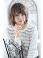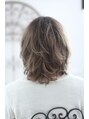ベースはやや前上がりのマッシュボブです。前髪は抜け感のあるラウンドバング。パーマは中間毛先にワンカールに入るように大きめのロッドでリラクシーな艶デジパーでかけます。カラーはアッシュマットに艶がでるピコトリートメントを混ぜて外国人風に!