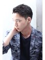 アンダーセクションを刈り上げます。ミドルセクションはセイムレイヤーベースでカットし、トップセクションはディスコネしセイムレイヤーの切り口でカットしますパーマヘビーサイドを立ち上げるように根元から1.5回転で23ミリで巻きます。