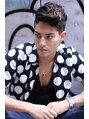 外国人系のエキゾチックなパーマスタイルベースはアンダーセクションは広めに刈り上げ、トップは短くセイムレイヤーでカットします。前髪はアシンメトリーに長めにカットします。