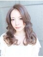 大人かわいい重めバングのガーリーひし形ヘアーアレンジで耳かけやかきあげスタイルにもパーマでクールの中にもグラマラスなほつれカールスタイルに前髪は斜めバング。ブラウングラデーションでヌーディカラーに大人のコンサバ黒髪や美髪スタイルにも