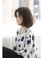 小顔アンニュイカールノットヘアードレープボブ。モダンかつクラシカルなカットラインに動きの出るようにトップにはローレイヤーをプラス。うざバングも取り入れスウィートな表情にカラーはパーソナルカラーを選び美肌にグレージュとローライトで美髪な暗髪