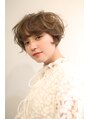 頭を小さく見せるコンパクトなショートパーマです。顔まわりはマッシュに切り込み耳周りはすっきり見えるようにカットしています。優しい還元力にエアウエーブの熱の力を使ってかけているので手触りが良いのが特徴です。