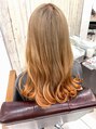 このスタイルをブックマークしてカウンセリング時にお見せください。全体をブリーチして上はベージュ下にカラートリートメントのオレンジを入れました。ケアブリーチがオススメです