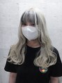 ケアブリーチで(3~5回)ブリーチ後、ホワイトブロンド前髪にブラックアッシュを入れました。このスタイルをブックマークして、カウンセリングの時にお使い下さい。