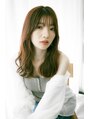 韓国ヘアっぽく顔周りに長めのサイドバングを作って、シースルバングと合わせてカットしてます。全体的にレイヤーを入れてゆるく巻いて、大人っぽい韓国ヘアです。
