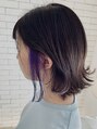 アクセサリーカラーでブルーを入れてます。もともとのカラーが前回暗めのカラーだった事もあり、ブリーチ2回して17レベルまで抜いてます。全体のベース赤味を抑えたカラーをしてます。