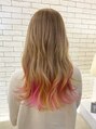 グラデーションカラーでブリーチ後毛先のオンカラーは2色をミックスしています!顔周りの毛先も左右非対称にお色をのせて周りとかぶらない、個性派カラーです☆