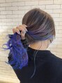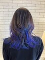 グラデーション部分をブリーチし、塩基性カラーのブルーとバイオレットを塗り分けしながらミックスになるように入れてみました!2色どっちも入れたい!という要望も叶えます☆