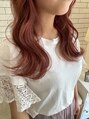 イルミナダブルカラーを使ったブリーチなしのカラー。通常のブリーチに比べ、キューティクルを傷つけにくいイルミナダブルカラーで明るくしたベースに、ピンク系でオンカラー。ブリーチほどの明るさを求めていない方やダメージが気になる方にオススメです。
