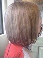ブリーチを使ったアッシュベージュのカラーです。ダブルカラーでしかだせない透明感とスモーキーな色でグッとオシャレに差がつきます。カットはサイドを刈り上げてツーブロックで膨らみを抑えてタイトに。降ろすとボブに。耳にかけると個性的に。