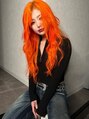 【ストリートに映える爆発的オレンジカラー】鮮やかすぎるネオンオレンジを全体にエクステでプラス。ロングエクステで巻き仕上げも映える主役級ヘア。アメ村やイベントでも絶対に視線を奪う、攻めたエクステデザイン。シールエクステ使用でなじみ度も◎