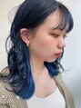 暗髪のように見えて光に当たった時にわかる色味のブルー!トップはネイビーの中にグレー感も混ざっているので透け感のあるスタイルに!耳にかけて色味が映えるのもとっても可愛いです!