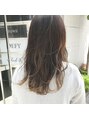 前回入れたハイライトを活かしたアッシュベージュカラーのロングスタイル。トップにレイヤーを入れる事で巻いた時に自然な動きが出るように計算してカットしました。