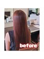 髪質改善カラー/カラー前に、カラーで失われる脂質を補うトリートメントを先に施術をしてから、カラー。カラー後もトリートメントを髪に入れ込んで質感を変化させていきます。