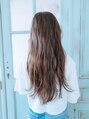 顔まわりと表面にたっぷりレイヤーをいれて動きがしっかり出るようなスーパーロングヘア。前髪も長めですが、リップラインで流れるようにカットしているので巻くとナチュラルになります!毛先も軽めにしているので巻くととてもかわいいです!