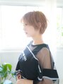 丸みのあるすっきりとしたやわらかいショートヘア。レイヤーを少しいれることで軽やかな印象になります。カラーリングはブリーチをして温かみのあるピンクみのベージュで、大人っぽい雰囲気の中にもかわいらしさもあるような色味に仕上げました。