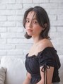 カラーは透明感が出るようなアッシュブラウンで真っ黒すぎず柔らかさが出るようにしています。カットは巻いた時にある程度動きが出るように質感の調整をしています。32mmのコテが通せる長さなのでアレンジも楽しめます。