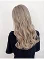 くすみベージュの柔らかいカラーに、ブリーチで透明感とツヤをプラス。赤みを抑えた絶妙なベージュトーンが、肌なじみよく大人っぽい印象を演出。光に透けるような仕上がりで、ワンランク上の垢抜けスタイルに。