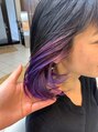 パープルのインナーカラーになります。耳にかけた時にさりげなく見えるのがとても可愛いカラーになります。ポイント的にブリーチをするので、ダメージも最小限に抑えることが出来ます。