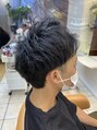 メンズツーブロックと刈り上げの組み合わせたスタイルです。トップがペタッとなりやすいため、ある程度長さを残し動きが出るように質感調整をいたしました。