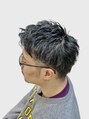 黒髪短髪でも重く見えない、束感と動きのあるスタイル。ツーブロック刈り上げとアップバングで、清潔感と男らしさを引き出します。幅広い年代に人気の定番スタイルで、ON/OFFどちらも対応可能です。