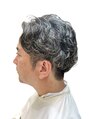 白髪を活かしたパーマと刈り上げで、大人の色気を引き出すダンディスタイル。顔周りの骨格に合わせたカットで小顔効果もプラス。ビジネスからカジュアルまで幅広いシーンで活躍する、洗練された印象を演出します。