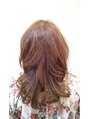 フロントにローライトを入れてメリハリをつけて、全体はベージュ系のライトレベルで染めました。 彼女の可愛らしさを引き出すために、毛先をランダムに巻いてふんわり愛らしいスウィートなスタイルにしました。