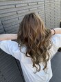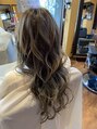 ハイライトカラー毛先は、数回のブリーチ入ってます毛先にかけて明るくしてます。ケアブリーチを入れてるので最小限のダメージでブリーチする事が出来ます。