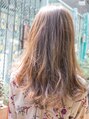 全体の毛先にワンカール、さらにバックの表面にはランダムなカールをつけて動きをだしてあげることで、ふんわりとした柔らかさのある、ナチュラルスタイルになります! ぷつんとしたカットラインと透明感のあるベージュ系カラーが相性ぴったりです!