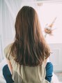 全体に重ためにカットされたロングスタイルです。前髪はリバースにながれるようになっているので顔まわりはそこまで重たく見えないようになっています。カラーリングはツヤ感がでやすいナチュラルなブラウン系です。