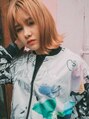 前下がりワンレングスボブ。ブリーチは1回で抜けるところまで抜きます。ミルクティーにピンクを少し足してオンカラー。前髪は目上ギリギリの長さでやや薄めに。巻いて下ろしたり、センターでサイドに分けても良いです!
