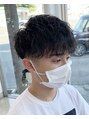 メンズ王道刈り上げマッシュスタイルに少し緩めのツイストスパイラルパーマです。少し緩くすることでセクシーさを出しています。