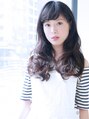 ローレイヤーのグラデーションカラーで、中間から毛先にランダムなくせ毛風ナチュラルカールの大人かわいい小顔のアンニュイなロングスタイルです。前髪は重めバングの内巻きカールでキュートさをアピール!