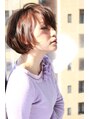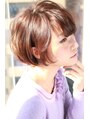 バックのボリュームがキレイに出るウェイトが重めのシルエットが特徴のボブです☆耳にかけてすっきりさせても可愛いですよ♪明るめのブラウンベースのカラーで艶感を