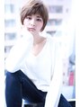 前髪を短くしてトップに動きをつけたショートスタイル☆片側を耳にかけることによってアシメ感も出せます♪カラーはアッシュ系をベースにハイトーンのハイライトを入れることによってより動きを出すことができますよ☆