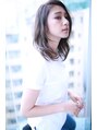 伸ばしかけのミディアムレングスにデジキュアでパーマオン☆スタイリングも簡単ですよ♪ ベージュベースのカラーで春らしく☆