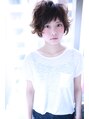ショートマッシュを軽くルーズになるようにカット。ラフに遊ばせて、さらに短い前髪で悪戯っ子感を出してみました☆8トーンのヴァイオレットベージュで品良く♪