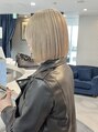 ハイトーンカラーブロンド切りっぱなしボブベージュカラー
