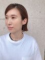 深めのオレンジベージュで夏から秋のヘアカラーにチェンジ♪夏でダメージした毛先を思いきってあごラインまでばっさりカット。涼しげな切りっぱなしボブスタイル