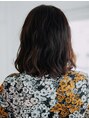 肩ラインでカットしたキッリパなしボブ。トップからウェーブをつけて動きのあるスタイルに。スタイリング剤はツヤ感のでやすいものでウェットな仕上がりにするのがおすすめです!前髪は少なめにとって束感をだすのが◎