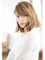 ハイトーンカラーのミディアムスタイルでゆるふわに☆重たくみえるボブスタイルも、細めの束感をつくり、エアリー感をだしています☆マットな質感で全体をつくり、少量のジェルをつけて束感をつくるのがポイントです☆