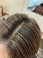 白髪を活かしたハイライトカラー今回はブリーチを用いていますが、ブリーチを使わずもう少し落ち着いた明るさのミドルライトカラーでも白髪を活かして染めることができます。ミドルライトカラーはブリーチに比べ赤みができやすいのでお気軽にご相談ください。