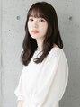 胸上レングスの重さを残したスタイル。レイヤーは入れず、まとまり重視で大人っぽい印象に。目の上で緩く巻いた少しワイドな前髪が、程よい抜け感と今っぽさをプラスします。