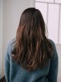 重ためAラインのロングスタイル!全体にゆるいパーマをかけることで重さに動きが出るのでロングでもラフ感がでてストレートロングスタイルに飽きたかたにおすすめ!バングはシースルーにし透け感抜け感をプラスして軽やかに!