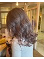 - 全体ブリーチ後ピーチベージュをON。大きめカールで上品な女性らしさを演出◎