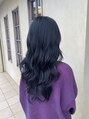 ブルーブラックカラー!暗くしたいけど、黒にはしたくない。透けてブルーっぽく暗いけど重くないカラーに。色が抜けてブラウンだったところから暗めに染めてます!