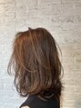 全体に動きと軽さを感じられるように毛質、骨格に合わせたデザインです。柔らかい雰囲気にも感じてもらえるようにアディクシーカラーで10レベルのグレージュ系の仕上がりです