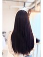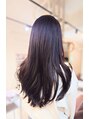 ロングヘアのメンテナンス。全体のラインを整え、大きめの巻きでも動きやすくレイヤーをプラス。酸熱ダブルEPで毛先までしっかり艶感をだして。