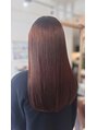 ダメージ毛を酸熱矯正で髪質改善。新生部のクセを矯正しながら中間~毛先のダメージ部位は酸熱ダブルでしなやかにまとまる艶髪に。根元から毛先まで艶感を感じる柔らかな手触りのストレートヘアに仕上がります。